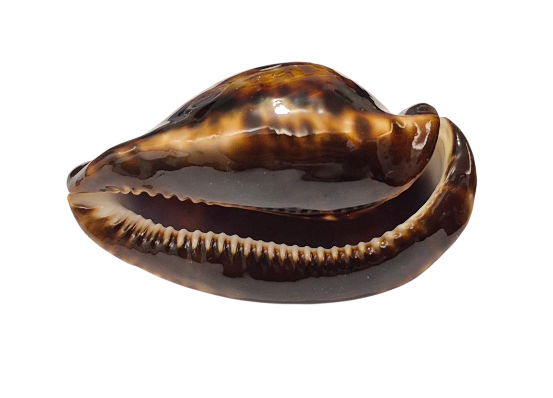 Superb live taken specimen, collected in 2025 by scuba diver off Starvation Boat Harbour area at 9 meters depth on green sponge. Awesome rostrated shape, great dark pattern with some blue, chocolate base. Selected quality with only little natural irregularities.