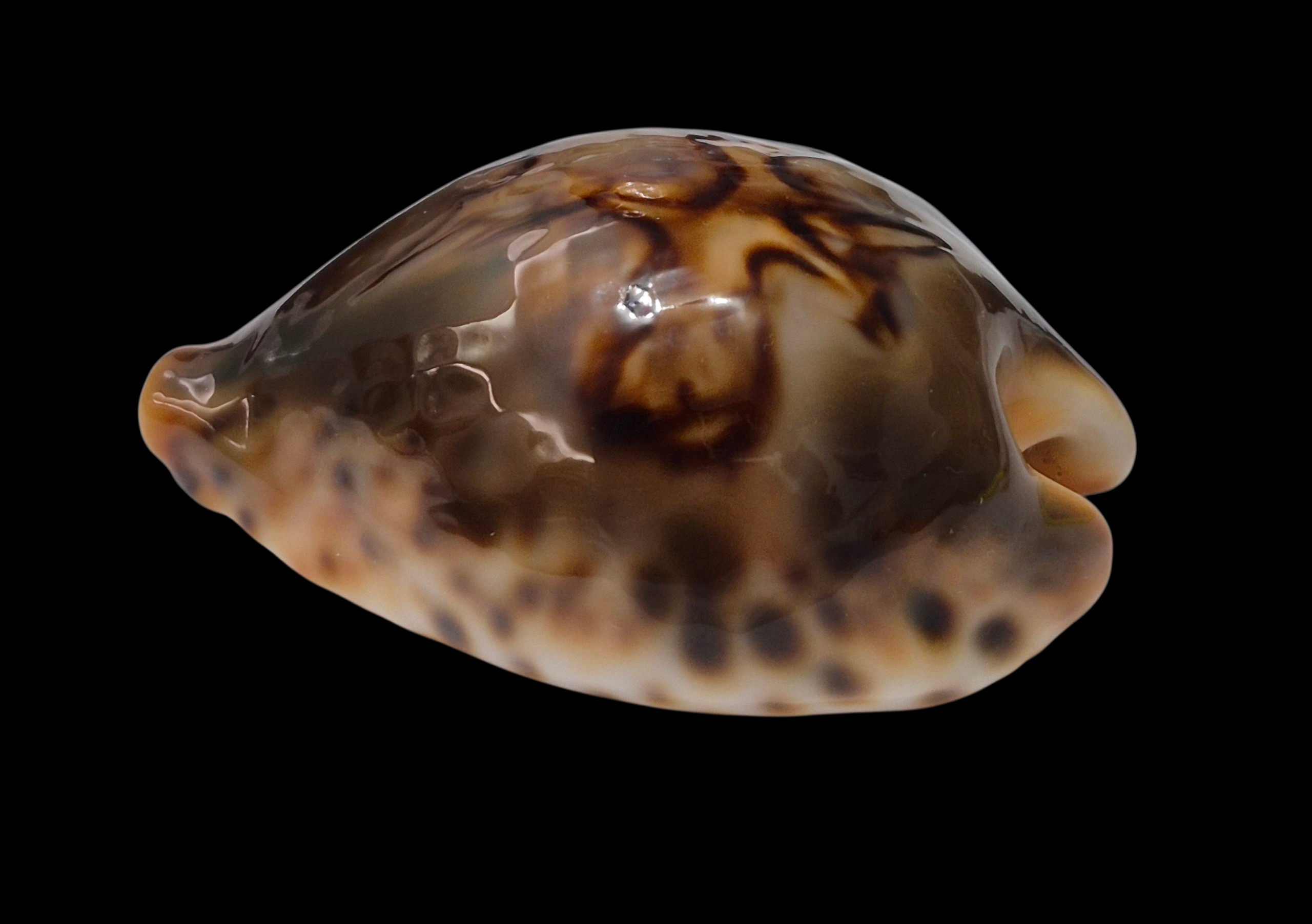 Exceptional live taken specimen, collected by local fishermen dredging off Margate, Natal area, at 100-110 meters depth. Fantastic shell with great shape, awesome extra-dark pattern, amazing orange base. A top piece for collection!
