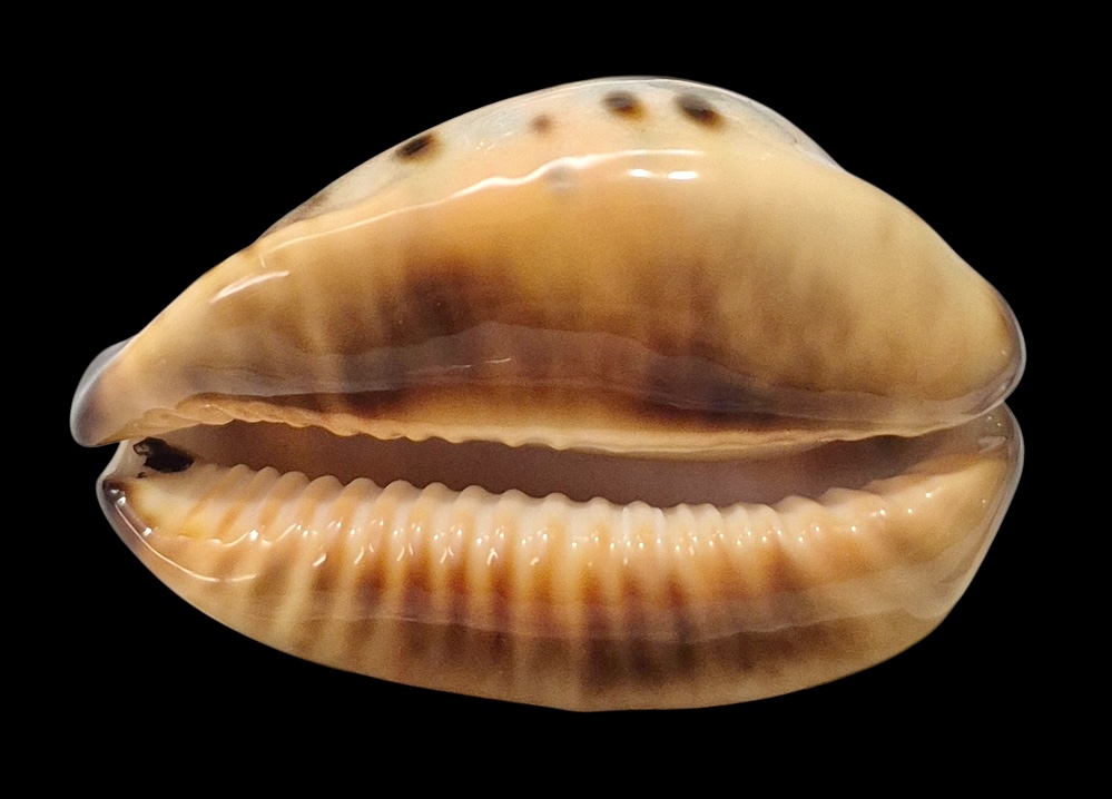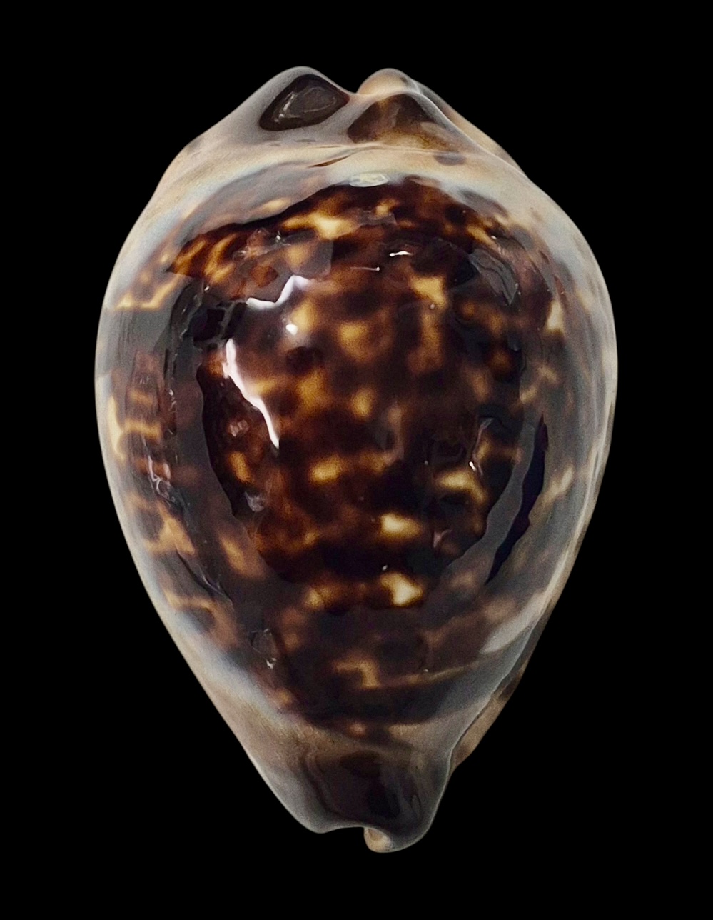 Fresh specimen collected by scuba diver at near 25-30 meters deep on sponge off Murion island zone. Adult shell of good size, great pattern, awesome dark base, perfect extremities. Not gem because little imperfections on posterior side due a failed fish attack.