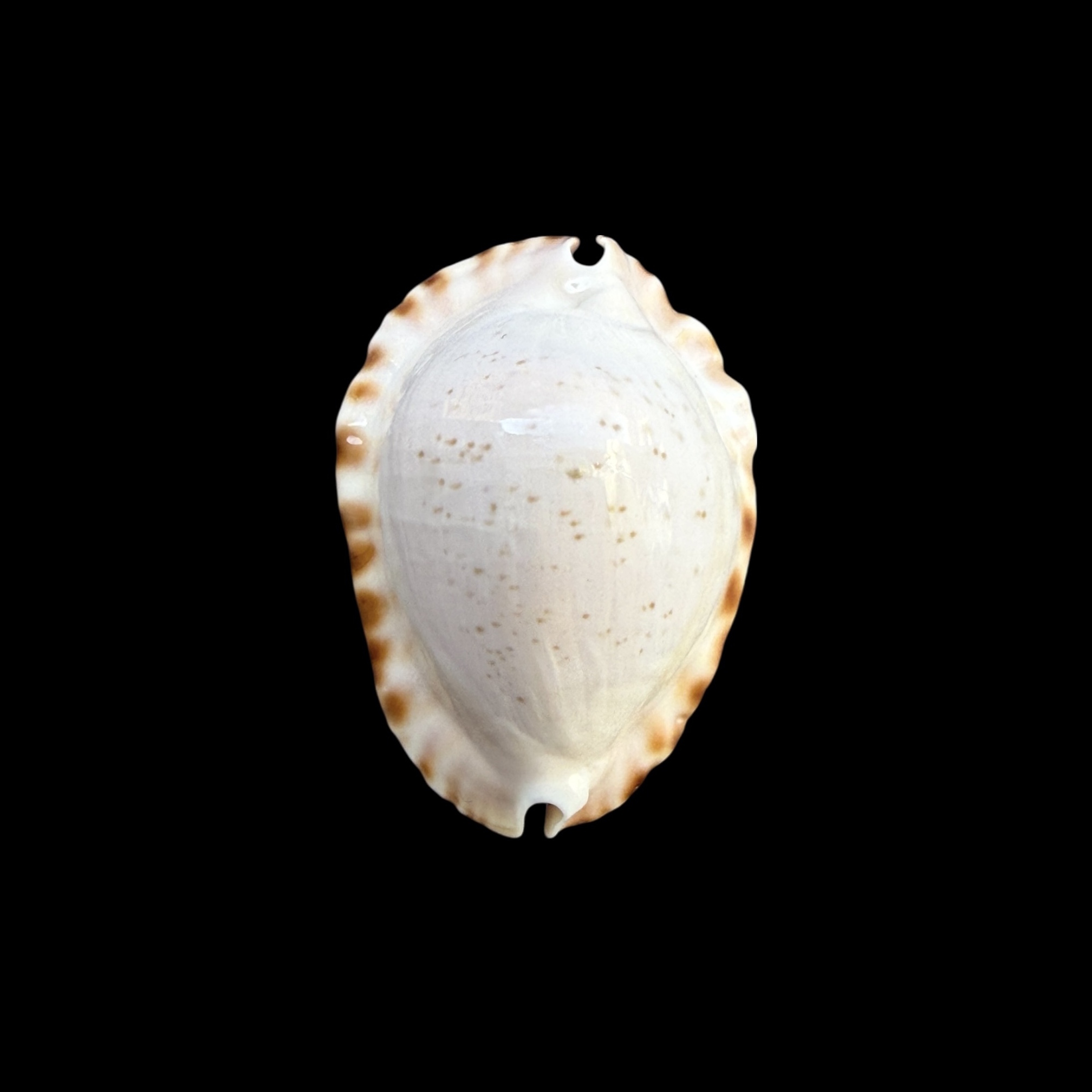 A splendid little shell, with an usnusually finely dotted dorsum, collected by scuba diver on sponge st near 40-45 meters depth. Displays beautiful, with a great shape and colorful base. Only a tiny well healed chip on canal, otherwise great.