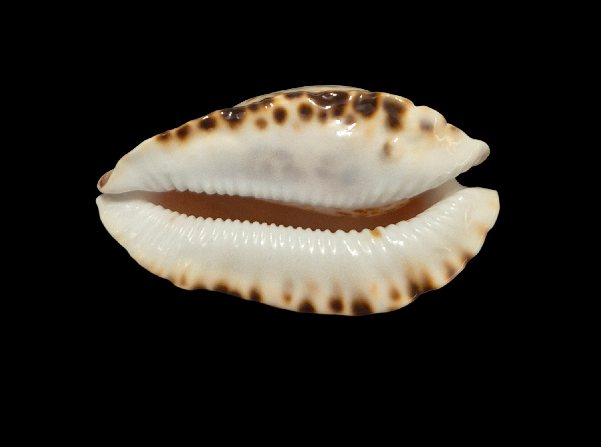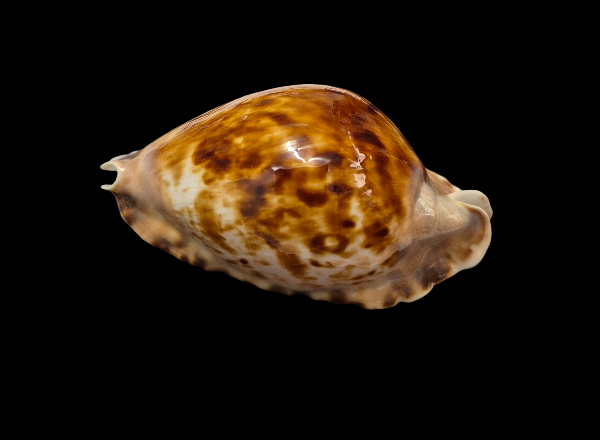 Selected specimen, live taken, collected by scuba diver off Mandurah, W. Australia, at near 20 meters depth on geodia sponge. A nice shell with superb dark pattern, beautiful pink margins, excellent extremities. Good quality with only natural irregularities on dorsum.