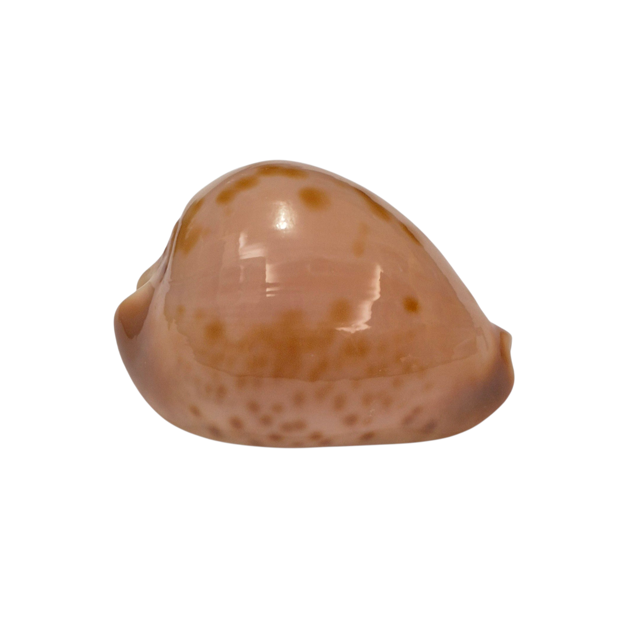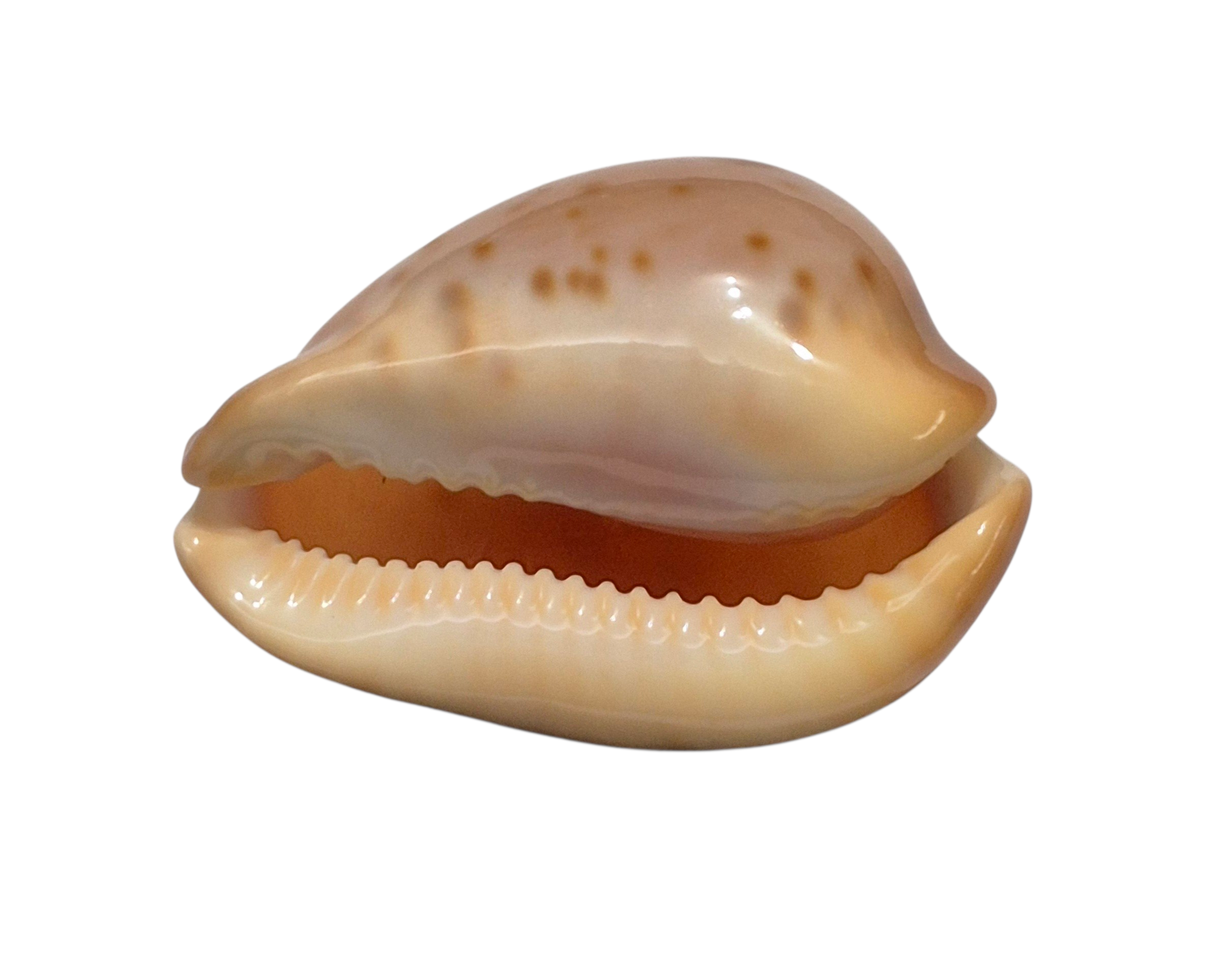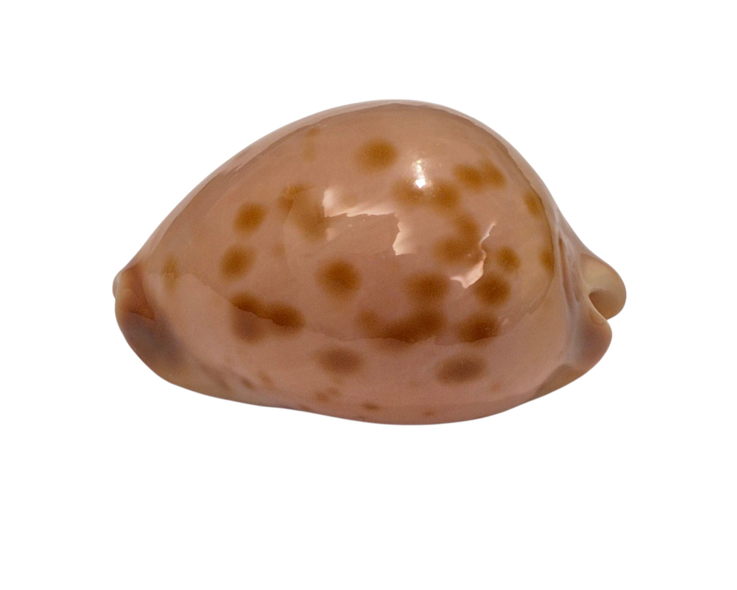 Selected patternful specimen, live taken, collected off Starvation Bay by scuba diver in marine caves and ledges on limestone and granite reefs at near 20-30 meters of water. Typical beautiful shell with golden/orange spots on deep pink background, and superb colorful base. Perfect dark extremities and margins, only few soft irregularities/natural lines on lateral side.