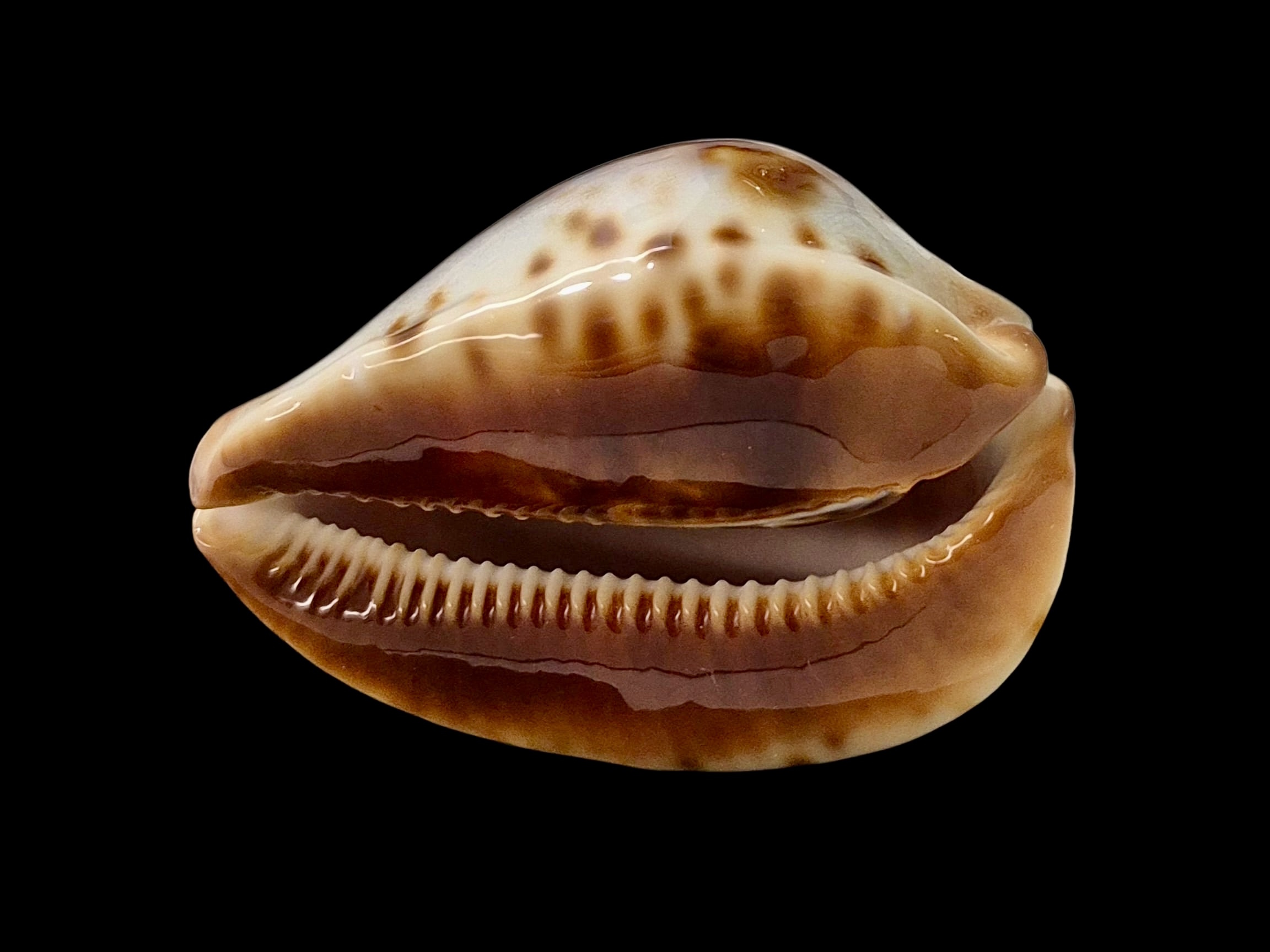 A beautiful honey colored shell of superb quality gem or very close to gem, collected by local trawling on sponge