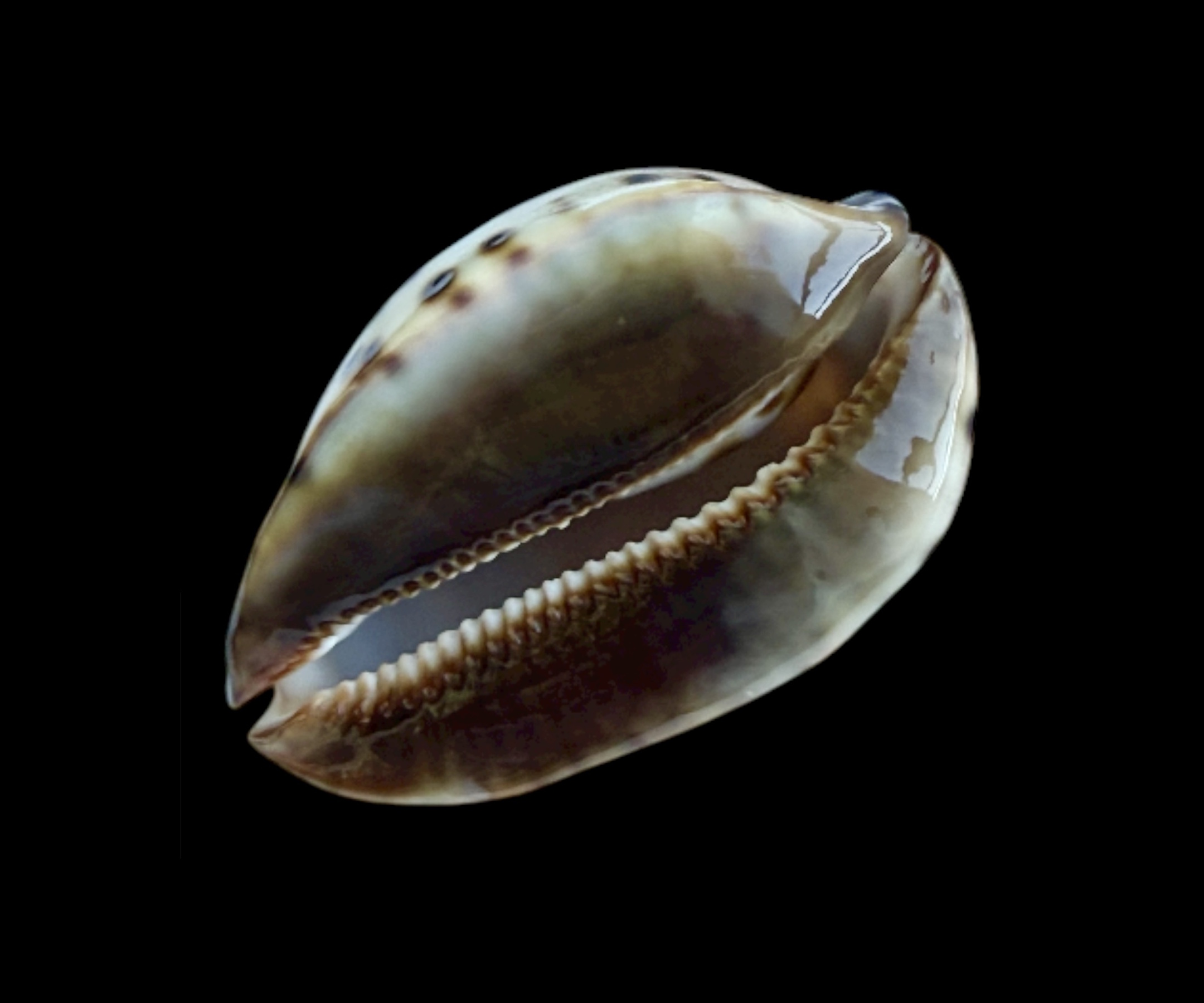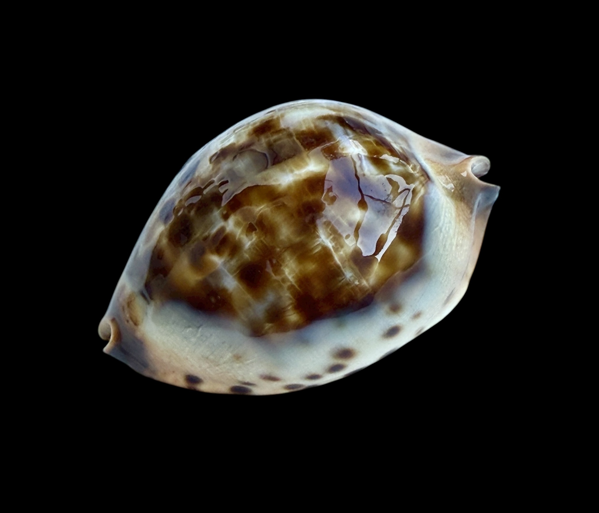 Large selected specimen collected by Rov on sponge at near 100 meters deep. Good size for this heavy shell, awesome pattern with high whitish margins, selected quality not far from gem